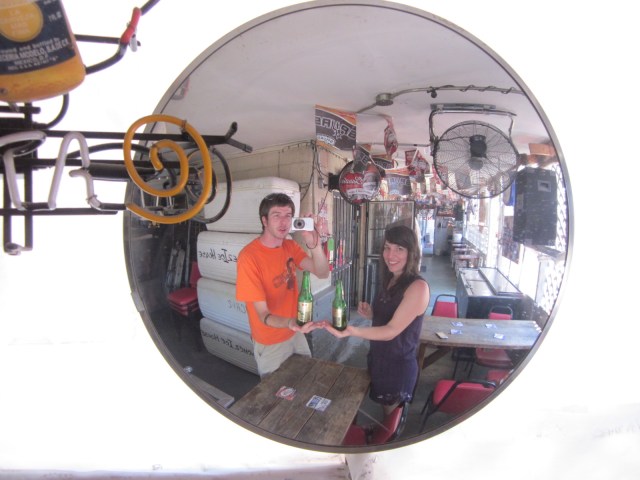 We sat inside due to the oppressive San Antonio heat.  There are ice coolers and boxes of beer everywhere!