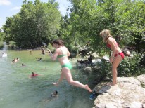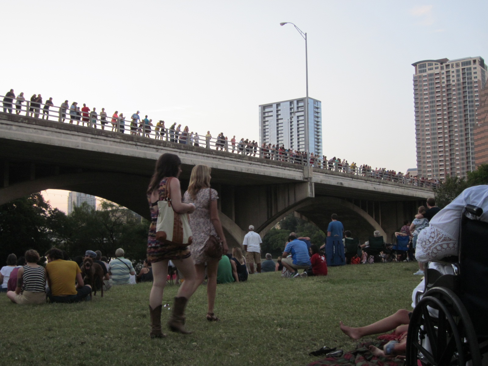 It’s Nicole and Jessie, old friends from Florida. Nicole lives in Austin and is becoming my hostess and hotel for 2 days. I ditch my search for Scholz and go to meet up with the gals for some lunch at Toasties, go for a dip at a spring, meet up with some more old Florida friends at the Oasis, and find the bat bridge.
