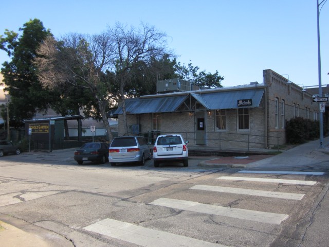 While Nicole stays late at the office, I crash back into Austin and make a B-line for Scholz again. This time, I will not leave until I have sat under a tree and drunk a brew dammit! I get a little worried since the GPS is leading me exactly the same way as when I had tried earlier and failed. I hear “Arriving at destination on left” again, in the exact same place as before, only this time, there it is. It had appeared out of thin air! I swear it wasn’t there yesterday!