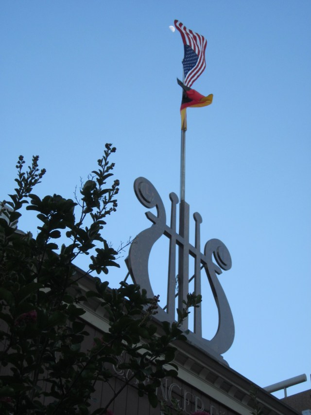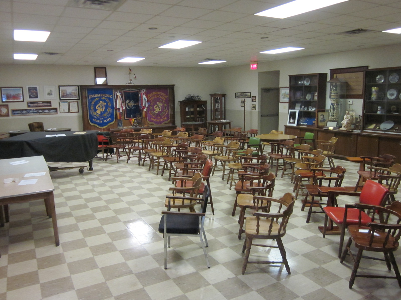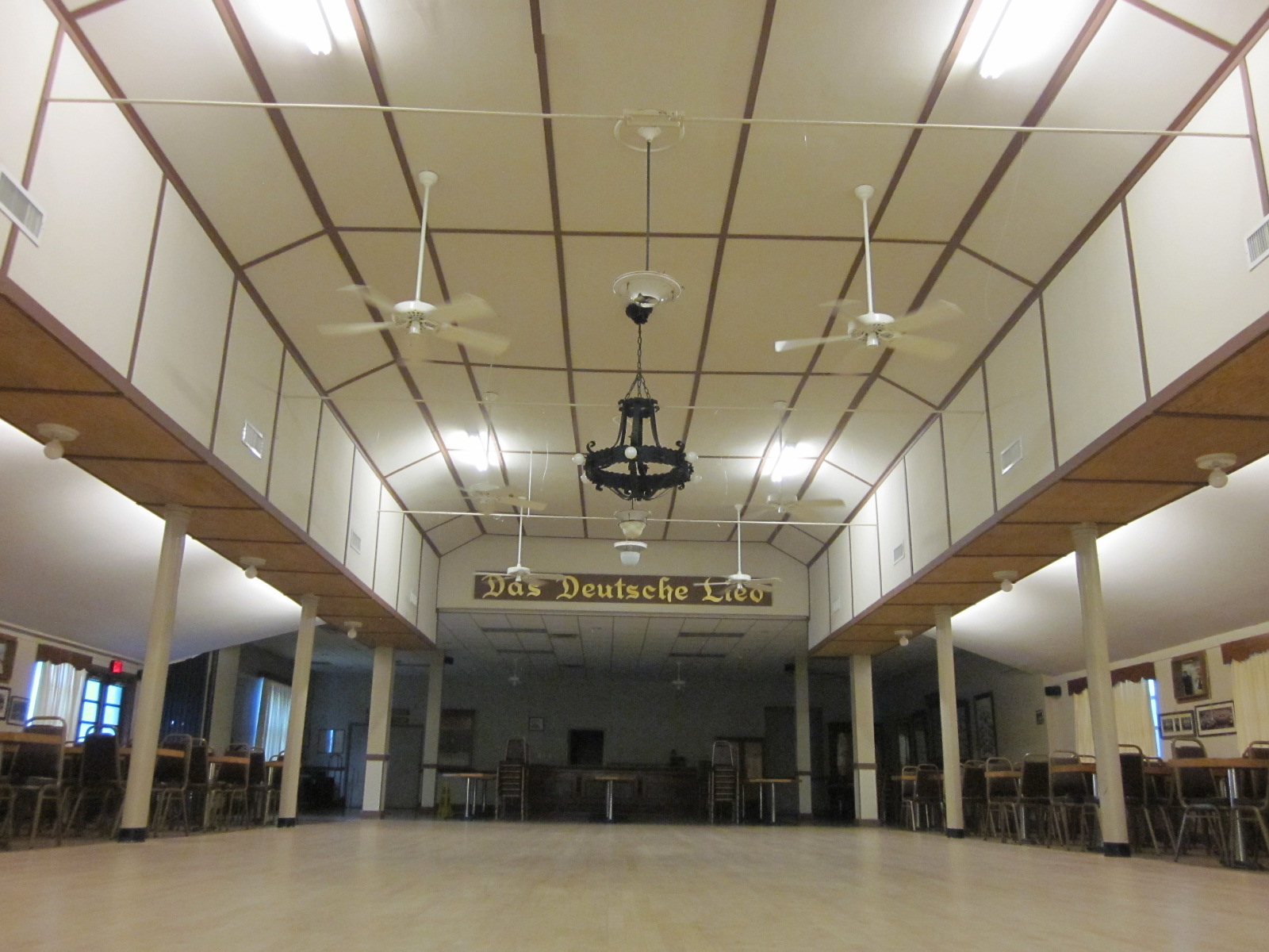 It is fascinating! The land and establishment have been owned by a German Singing Organization, called the Austin Saengerrunde, for 114 years. If one is so mindful to look on top of the bar, a large Lyre can be seen accompanying the American and German flags. Jeremy takes me next door to the ball room where the club has celebrations and where other organizations can rent out the space for events.