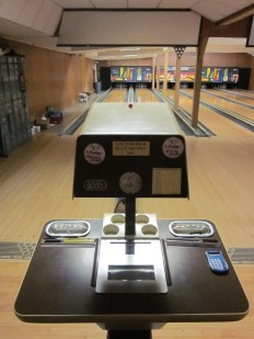 From there, we go through a back door and enter a hidden treasure. An old 6 lane bowling alley! They still have the same wood floors from the original construction, and they employ retro old projector screen scorekeepers. It is available for use by membership, so cool!