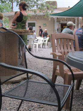 As more regular customers came, they would bring their own furniture. If someone wanted a table, they would bring an old table and plop it down in the backyard. Not enough chairs? Just bring your old plastic one from home and leave it! A big wooden spool makes a good table when turned on its’ side… new table! The customers furnished the backyard garden area completely themselves. The owner said that a nice side effect is that it makes the patrons feel vested in the business.