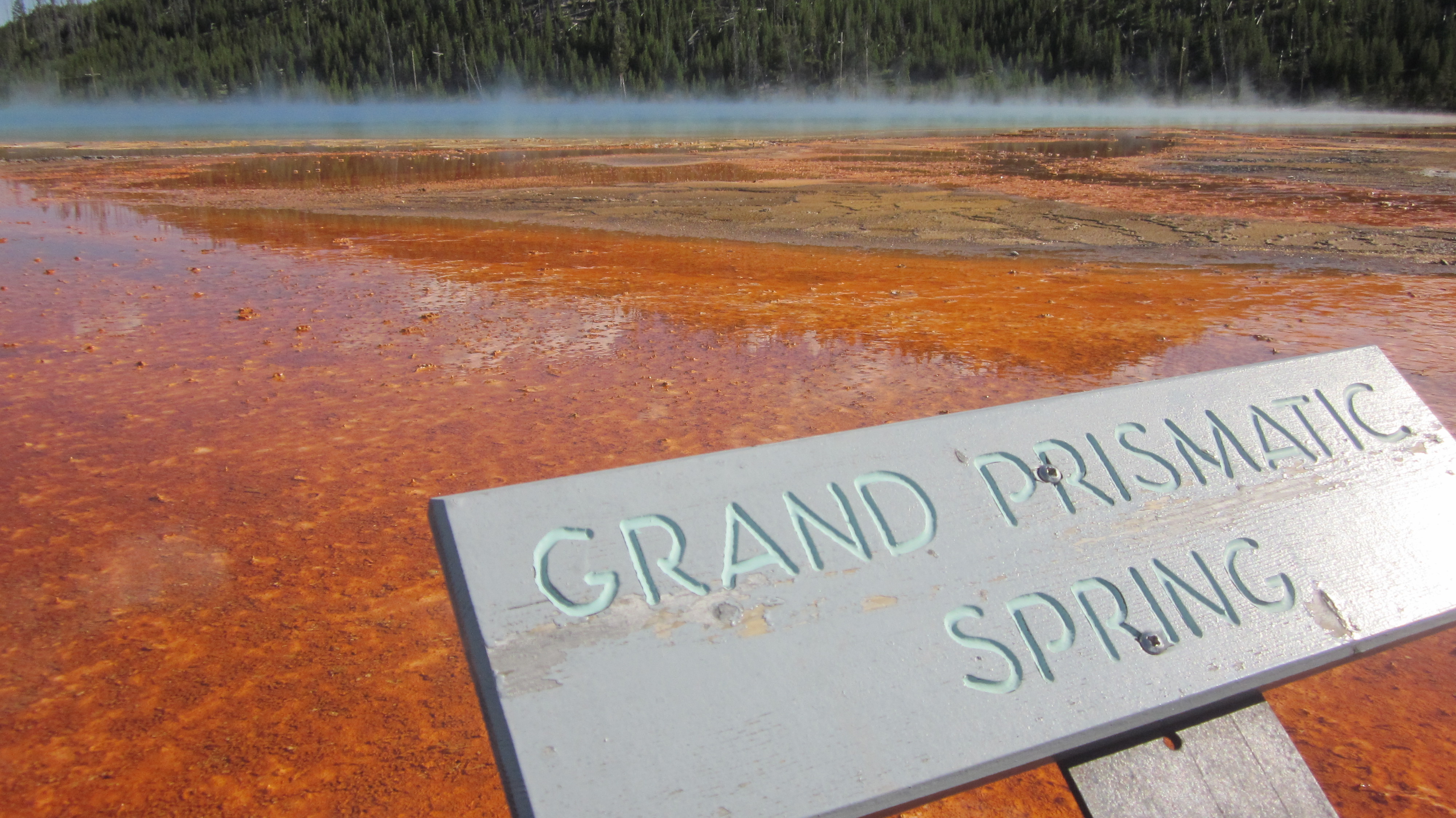 I sort of saw Old Faithful… I arrived right when it started to spout!  I hear people yelling “It’s going!” and we all began to run over.  I could see it over the high trees, but when I got to the clearing, it was fizzling out.