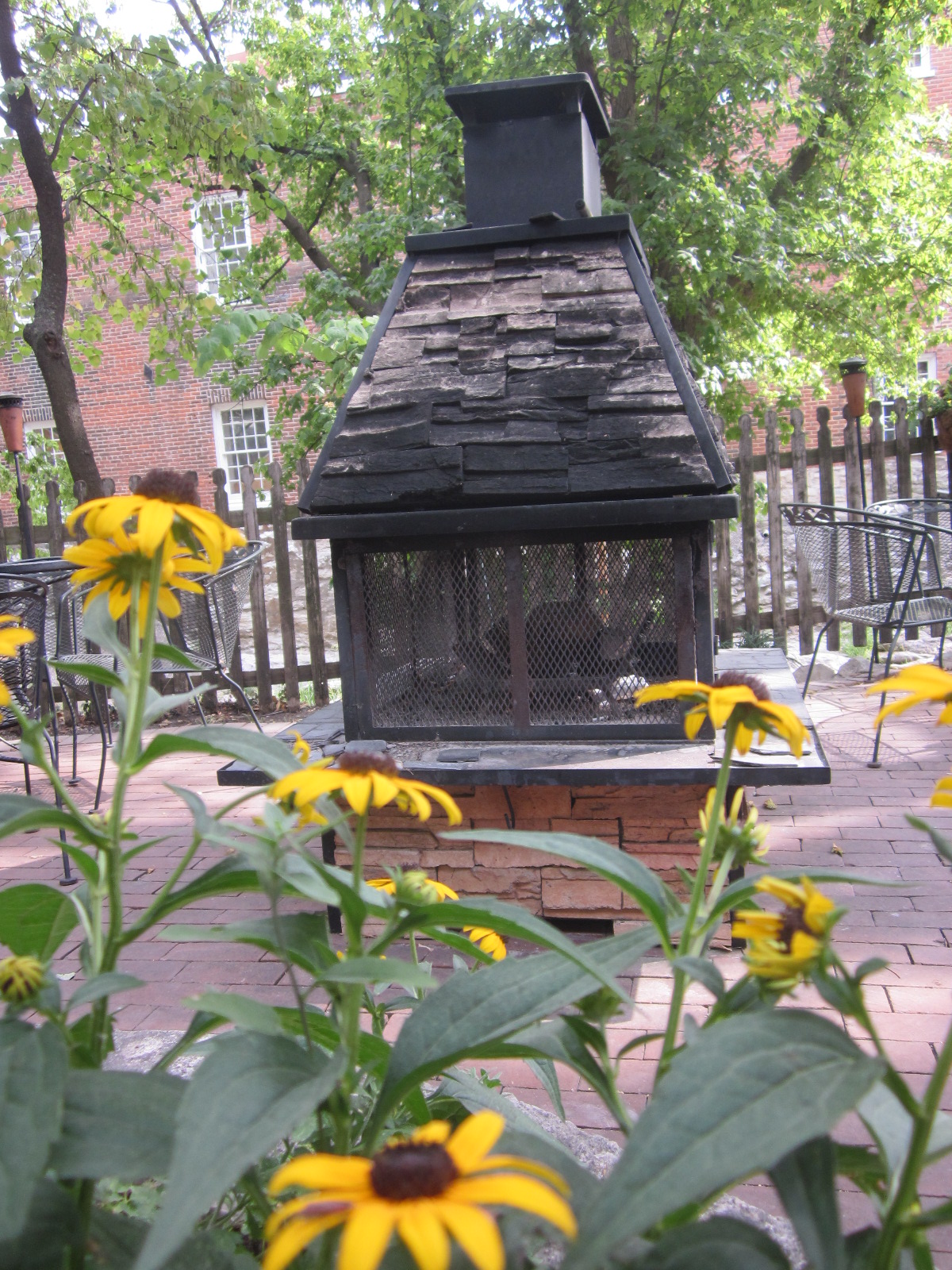 There are 2 fireplaces set up in the middle of the main patio. The website says that children sometimes bide their time roasting marshmallows in them while the adults sit back and have a drink. There is no need for a fire in this heat, but the image of happily distracted children in the cooling months is nice. I want to roast marshmallows too!