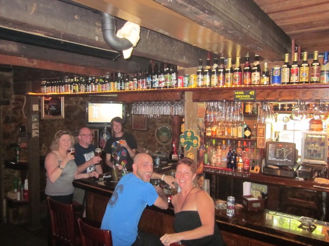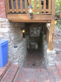 I walk through the main building and and the hostess lets me sit myself outside. I order a beer, but since I am not getting food, the waitress tells me that it is fine if I just help myself to the indoor bar that is located on the lowest floor. I love going into basements to get to a low ceiling-ed bar! I really do! I love the coziness and chummy-ness.